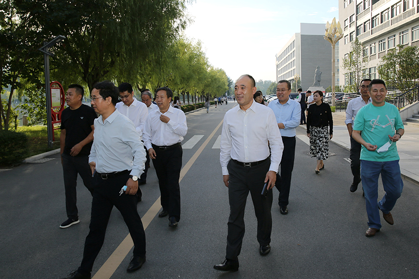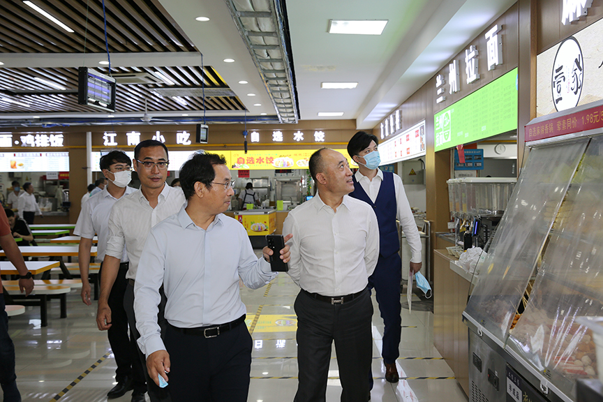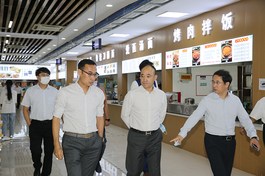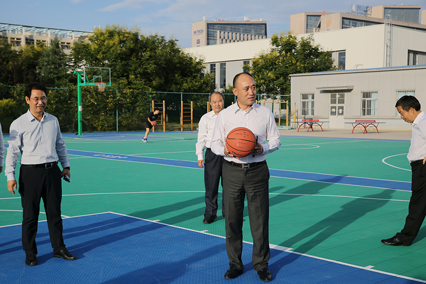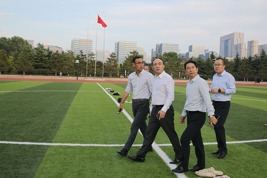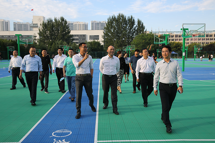 表彰大會結束后,辛軍董事長、張吉亮總裁一行人走進校園,實地察看學校基礎設施建改情況,先后視察了網球場、籃球場、操場等體育場地,隨后考察食堂、圖書館及校園整體環(huán)境的改建修繕情況,了解新學期各項安排、疫情防控、校園安全管理等工作開展情況。