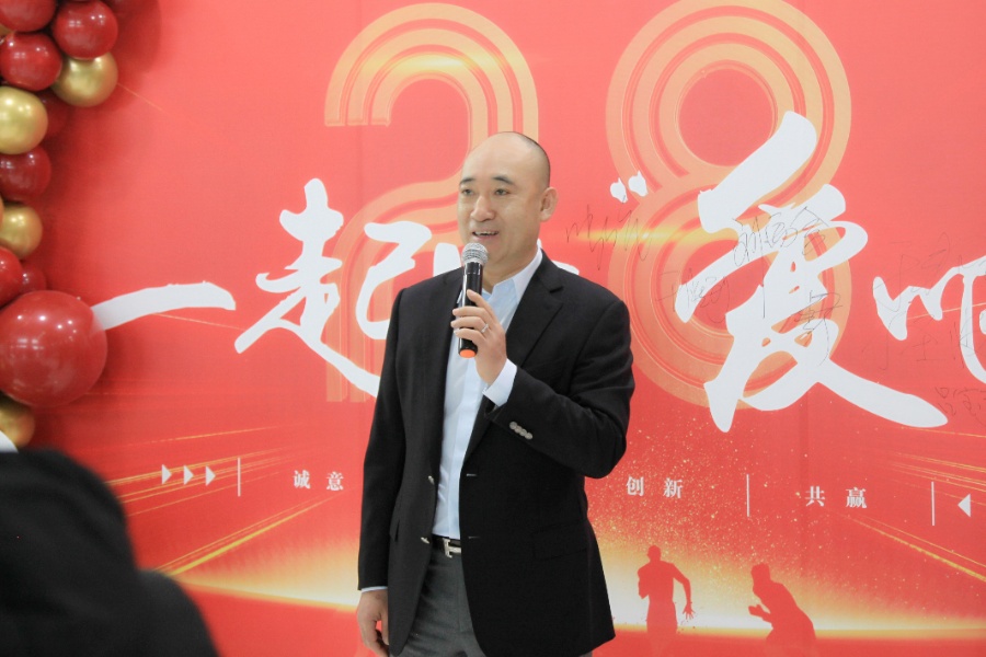 祥隆企業(yè)集團(tuán)董事長(zhǎng)辛軍、總裁張吉亮及各產(chǎn)業(yè)、職能中心領(lǐng)導(dǎo)出席慶典,并送上對(duì)祥隆企業(yè)集團(tuán)的祝福。辛軍董事長(zhǎng)為與祥隆企業(yè)集團(tuán)同齡的員工發(fā)放禮品并發(fā)表講話,感謝全體員工28年風(fēng)雨同行的陪伴,祝福祥隆企業(yè)集團(tuán)未來(lái)步履不停,四海迎光!