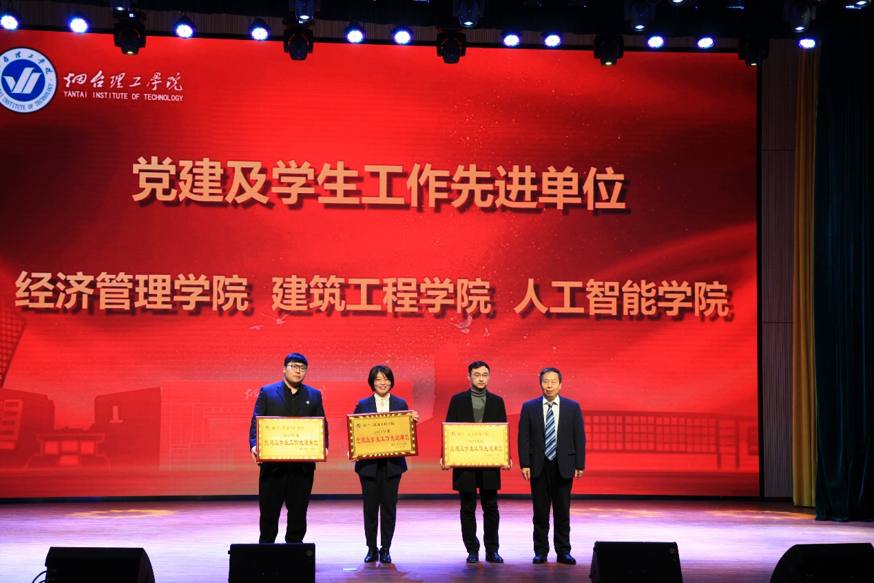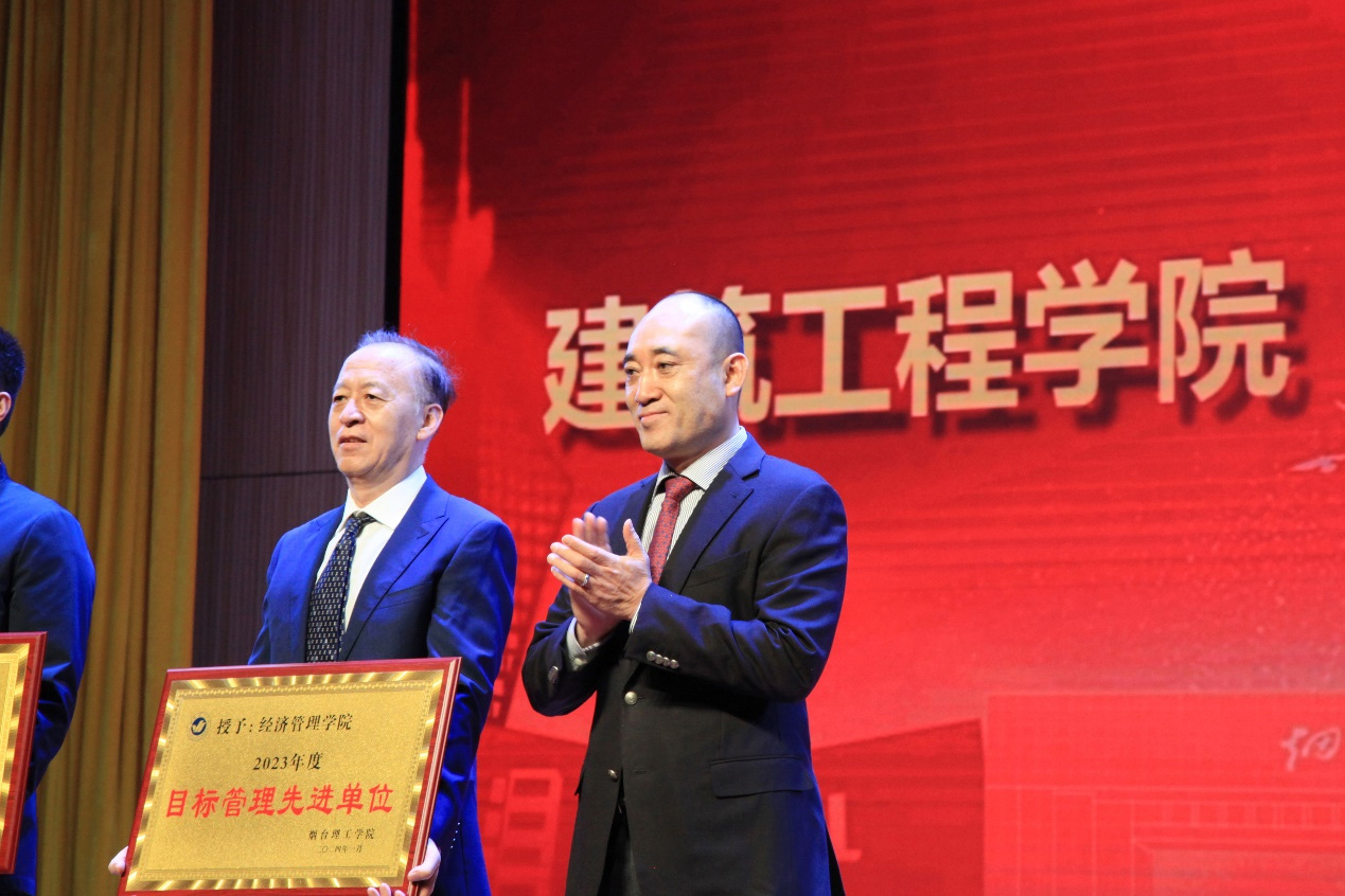 祥隆企業(yè)集團(tuán)董事長、煙臺理工學(xué)院董事長辛軍及其他校領(lǐng)導(dǎo)為“目標(biāo)管理先進(jìn)單位”教學(xué)單位、“黨建及學(xué)生工作先進(jìn)單位”等先進(jìn)單位頒獎。