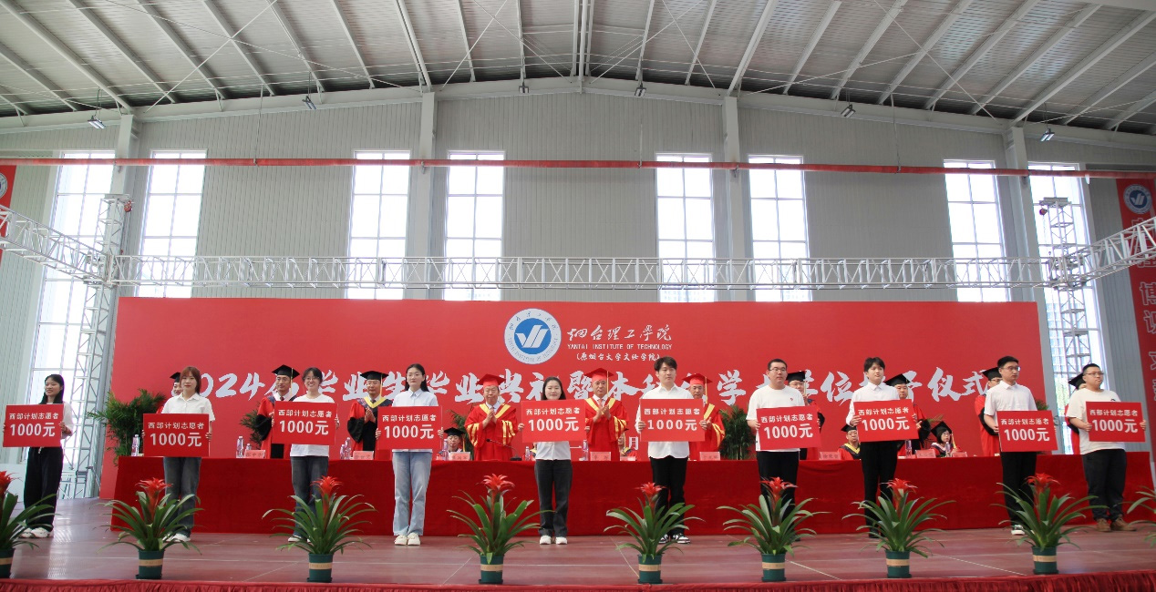 辛軍董事長(zhǎng)、于光輝校長(zhǎng)、盛國(guó)軍書(shū)記為優(yōu)秀畢業(yè)生代表、志愿服務(wù)西部計(jì)劃畢業(yè)生頒獎(jiǎng),為畢業(yè)生代表頒發(fā)學(xué)位證書(shū)、扶正流蘇并合影留念。